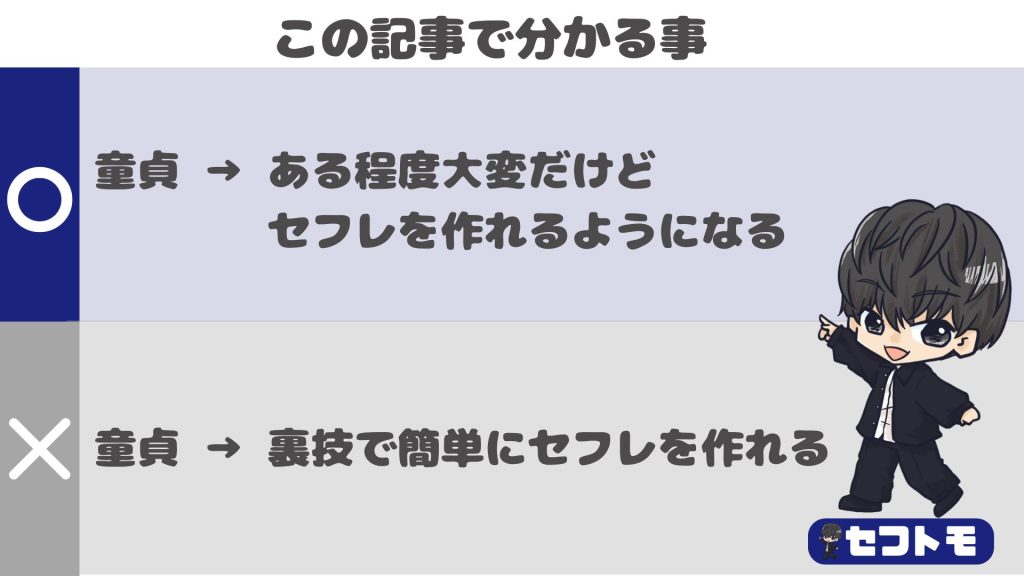 このページでは、「セフレの作り方」について、どこよりも分かりやすく、丁寧に、童貞の方でも実践できる形でお伝えしていきます。