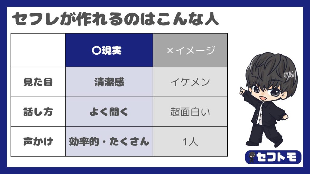 イケメンではなくてもセフレが作れる理由はこちらでより詳しく解説しています▼