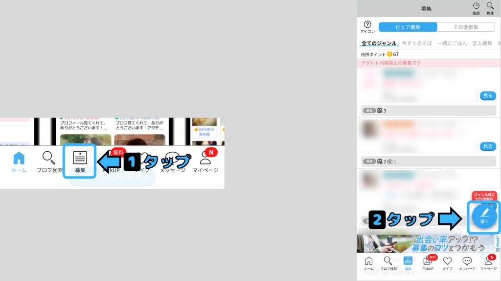 画面下にある「募集」をタップ