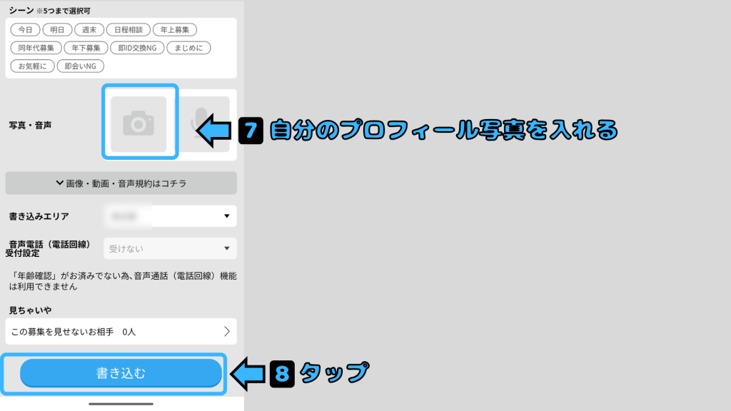 「書き込む」をタップ