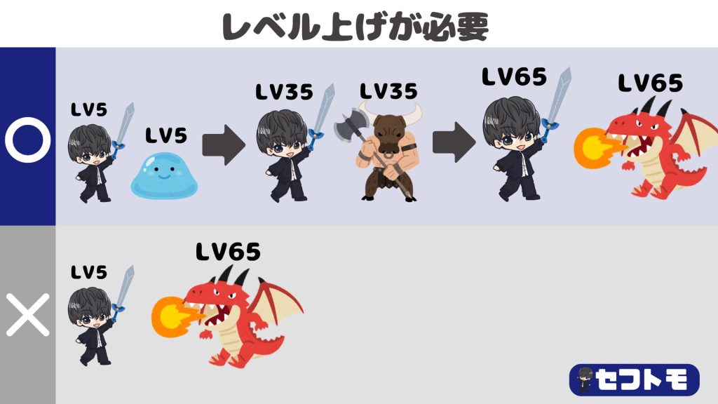 つまり、手の届きやすい相手と最初に関係を築くことで、自分の経験値もどんどん上がっていきます