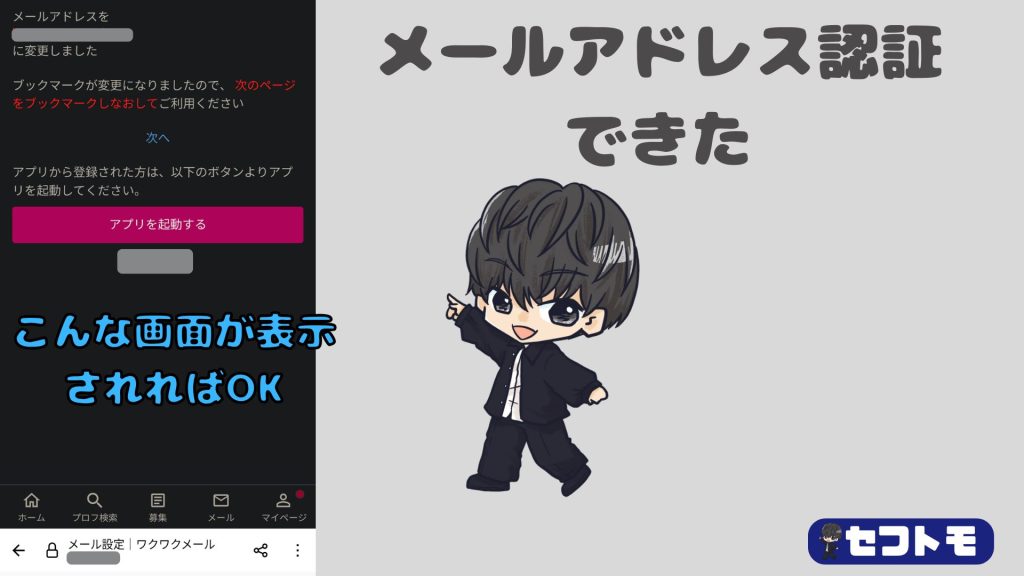認証コードを確認出来たらワクワクメールの画面に戻って認証コードを入力します