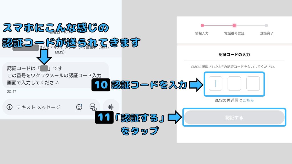 そしたらスマホに認証コード(3桁の数字)が送られてきます